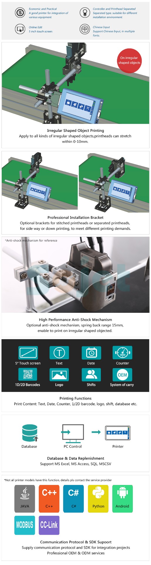 Date format Two kinds date modes (production date, expire date), the date format can be customed