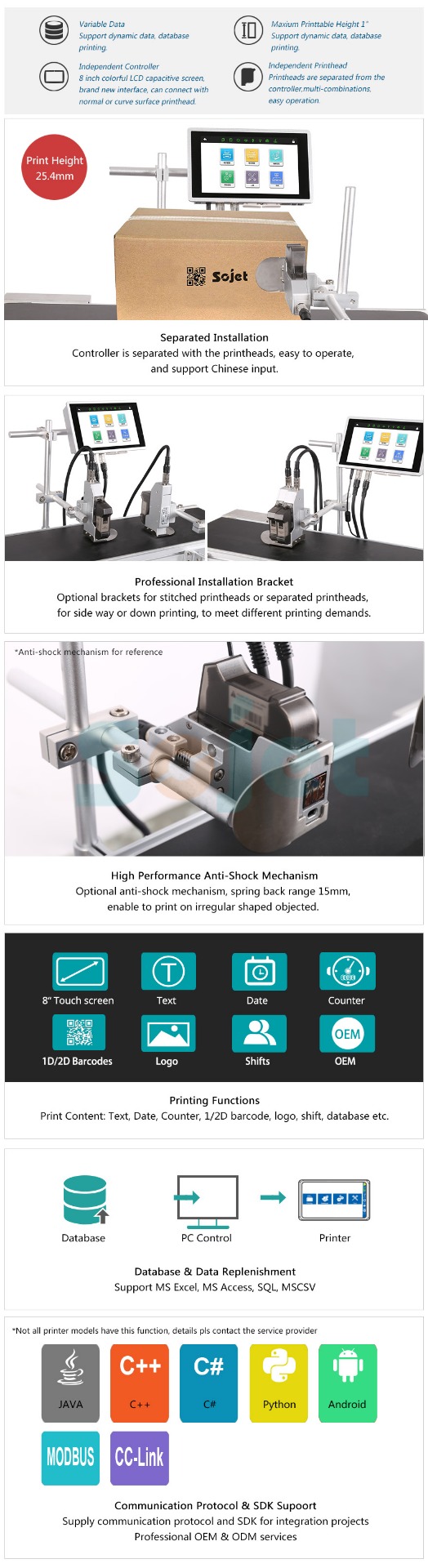 Installation Standard side printing, down printing bracket and anti-shock bracket, users can install according to their needs; spring mechanism is optional